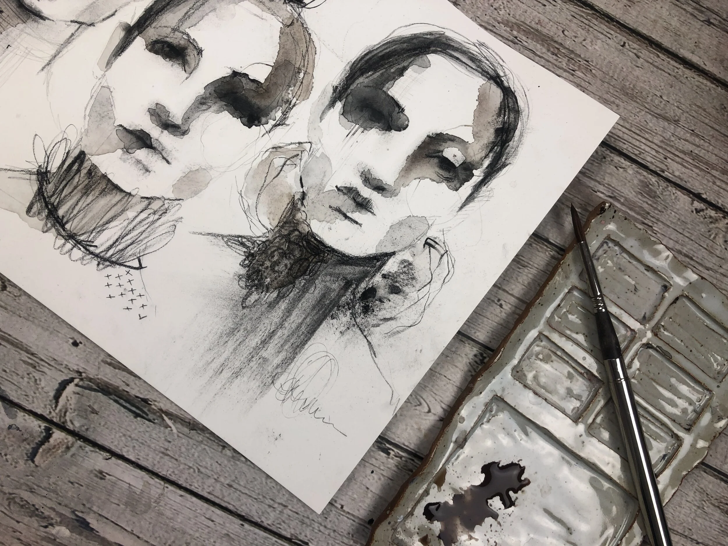 -Expressive charcoal portraits with a nod to classical proportions.