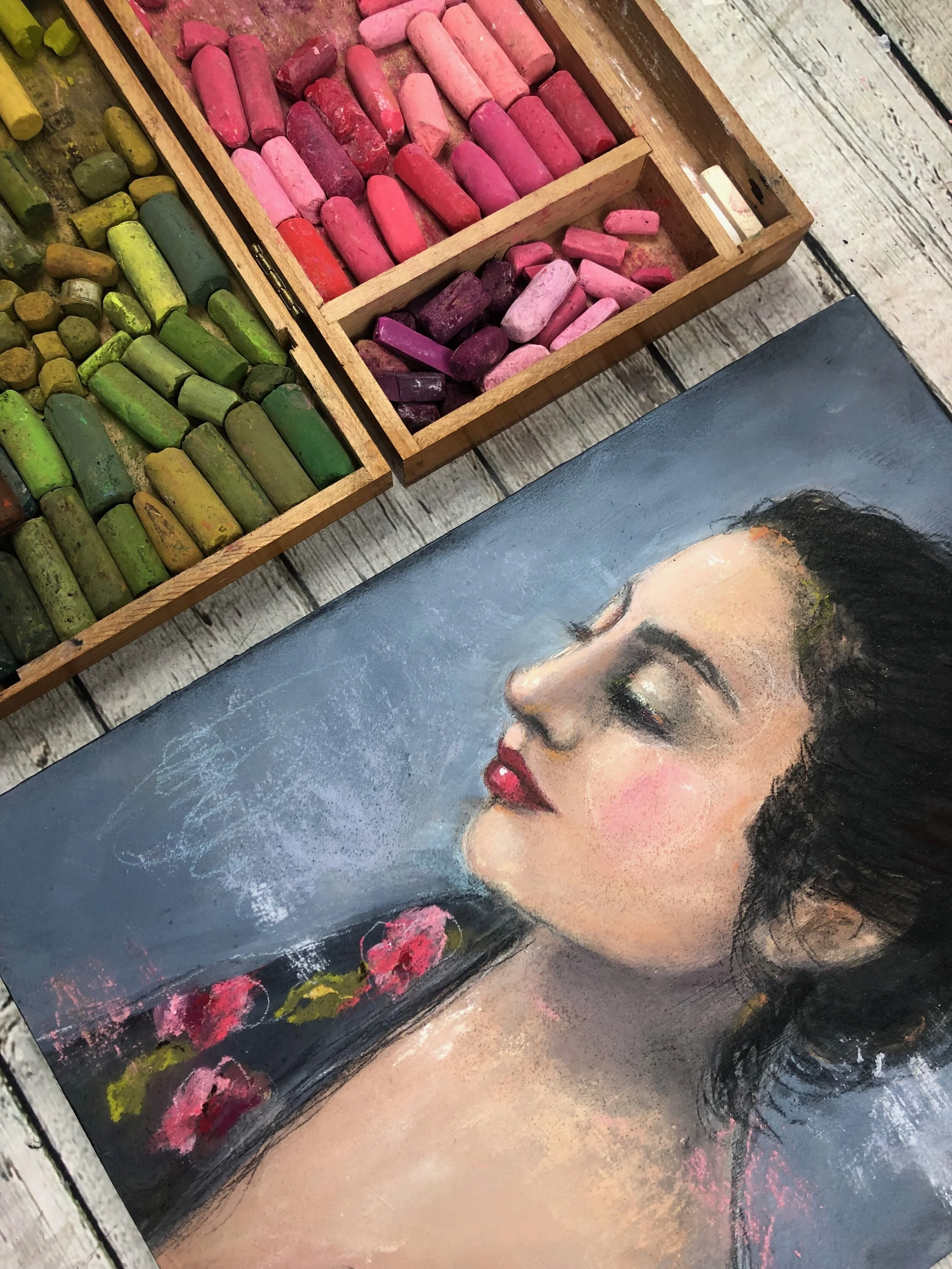 -Step by step portrait using acrylic paint and pastels